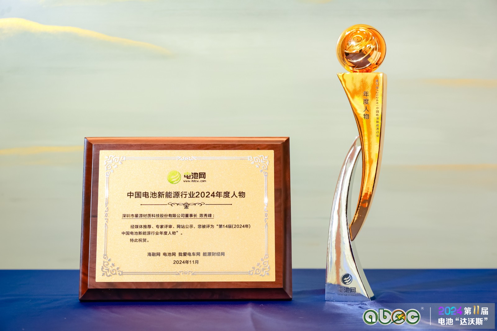 11月14日,在由海融网、电池网、我爱电车网、能源财经网主办的第14届(2024年)中国电池新能源行业年度人物/年度创新奖/成长潜力奖/优秀供应商颁奖盛典上,taptap点点官方网站董事长陈秀峰成功获评中国电池新能源行业年度人物,是锂电池隔膜行业唯一获奖人。